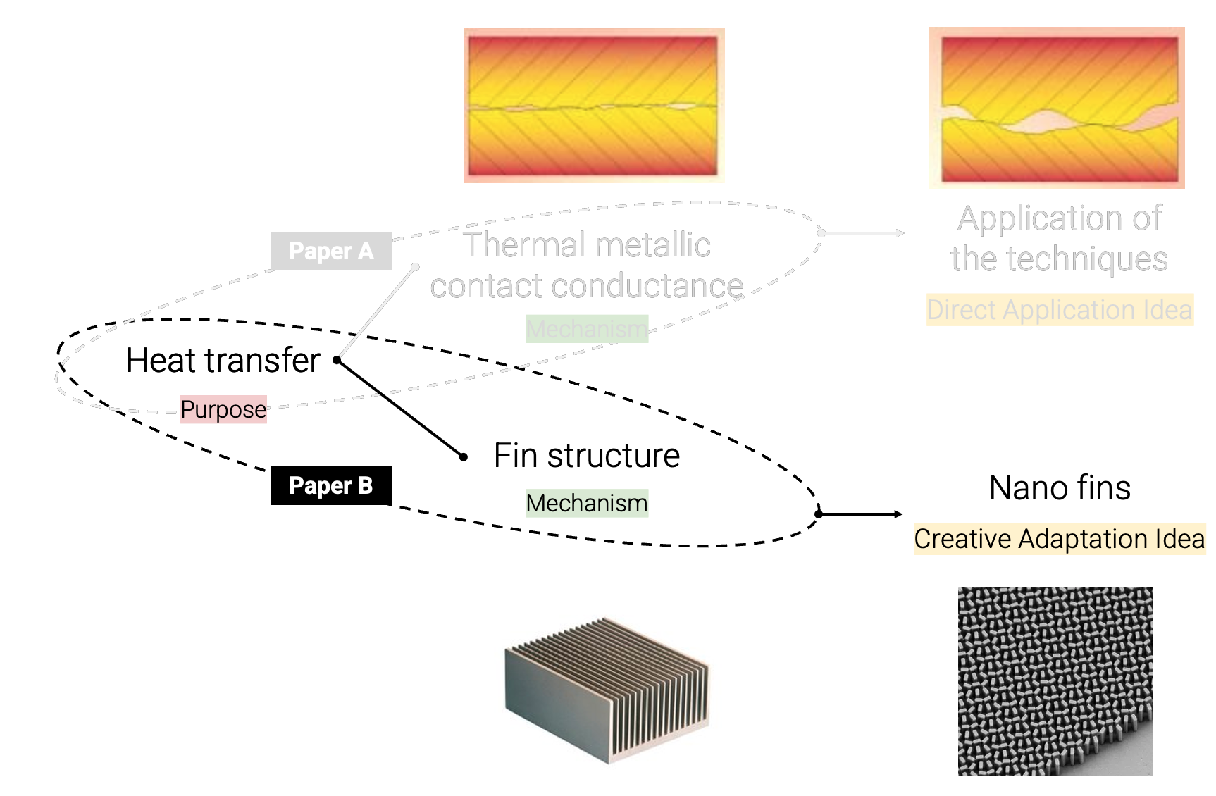 We developed BioSpark, a system that computationally bridges this gap. It not only finds inspirations but automatically transfers them to the target domain, generating specific application scenarios and suggesting concrete, manufacturable materials.
